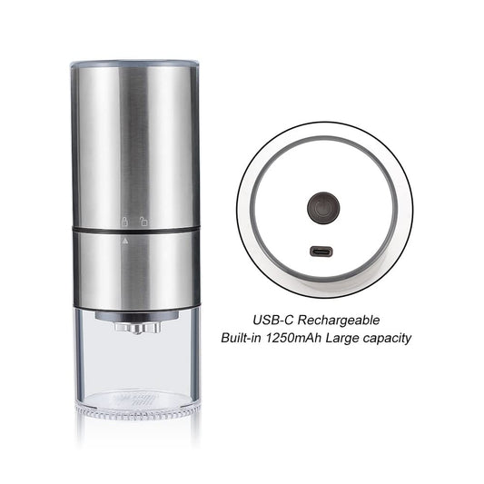 KUFUNG Electric Coffee Grinder, Rechargeable Mini Coffee Grinder With Multi Grind Setting, Coffee Bean Grinder Spice Grinder For Herbs, Nuts, Spice Mill (Silver)