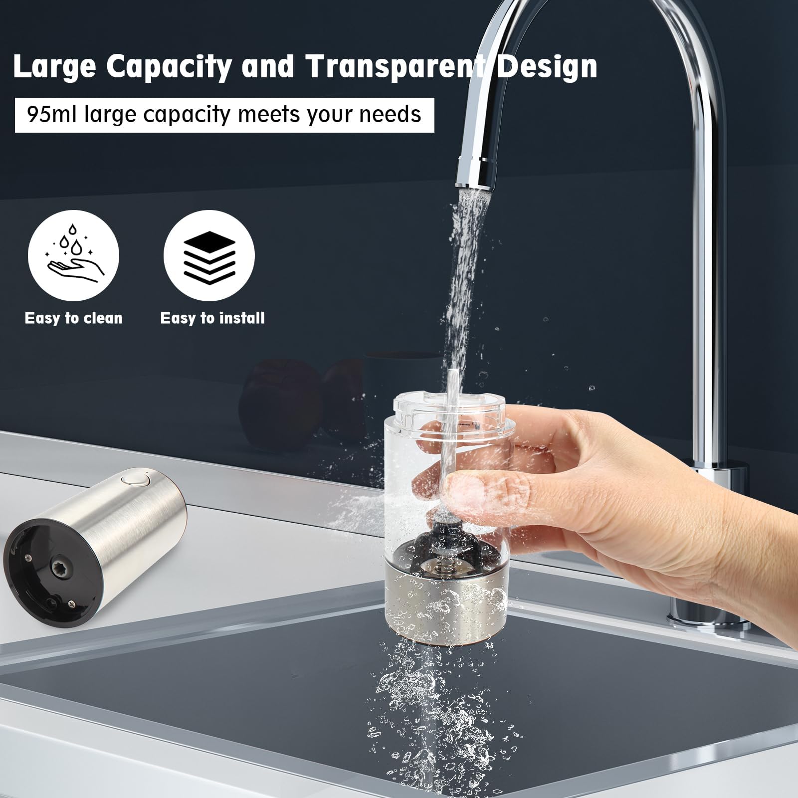 KUFUNG Electric Salt & Pepper Grinder - Automatic Spice Mill Set with Adjustable Coarseness - Refillable for Black Peppercorn & Sea Salt - USB Charge - Rechargeable (Silver-1 Pack)